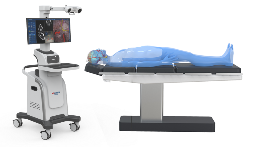 在技术创新方面,艾瑞迈迪聚焦手术导航精准化需求,攻克光学精准定位核心部件、电磁定位核心部件,以两个关键定位核心部件为基础,研发手术导航机器人技术平台,研制具有自主知识产权的导航核心部件与终端应用产品,实现病灶、血管、组织结构、手术器械及相对位置关系的术中直观显示,完成术前/术中多模态医学图像实时融合渲染,提供术前精确规划、术中精准导航、术后量化评估全流程解决方案。